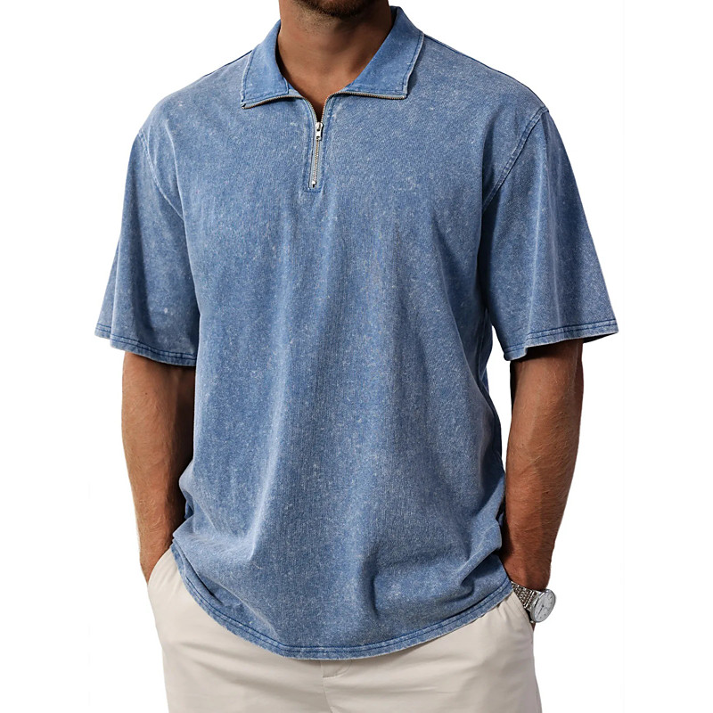 Men's Zip Polo Golf Shirt Casual Holiday Zip Lapel Short Sleeve Fashion Basic Plain Vintage Style Quarter Zip Summer Spring Spring Summer Regular Fit Light Blue Army Green Black Pink Navy Blue