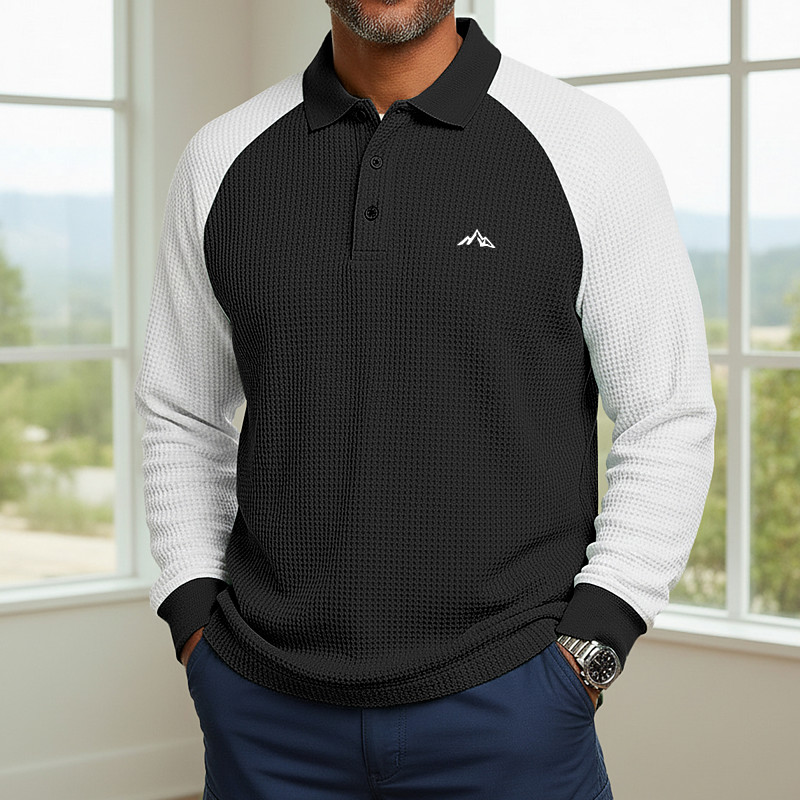 Men's Waffle Polo Shirts Quarter Zip Polo Outdoor Causal Quarter Zip Long Sleeve Fashion Modern Solid Color Color Block Knitted Spring Spring Fall Regular Fit Black Navy Blue Purple Green Gray