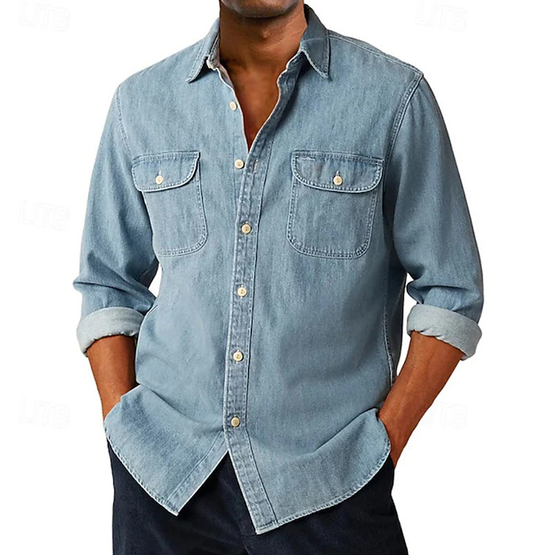 Men's Shirt Casual Shirt Button Up Shirt Cargo Shirt Acid Wash Shirt Blue Black White Purple Green Long Sleeve Plain Lapel Daily Outdoor Clothing Apparel Fashion Modern Casual Comfortable