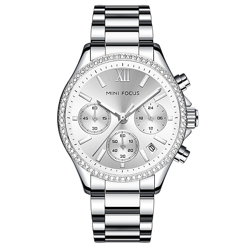 MINI FOCUS Damen Quarzuhr Kreativ Mode Lässig Armbanduhr leuchtend Kalender Wasserdicht Weltzeit Edelstahl Beobachten
