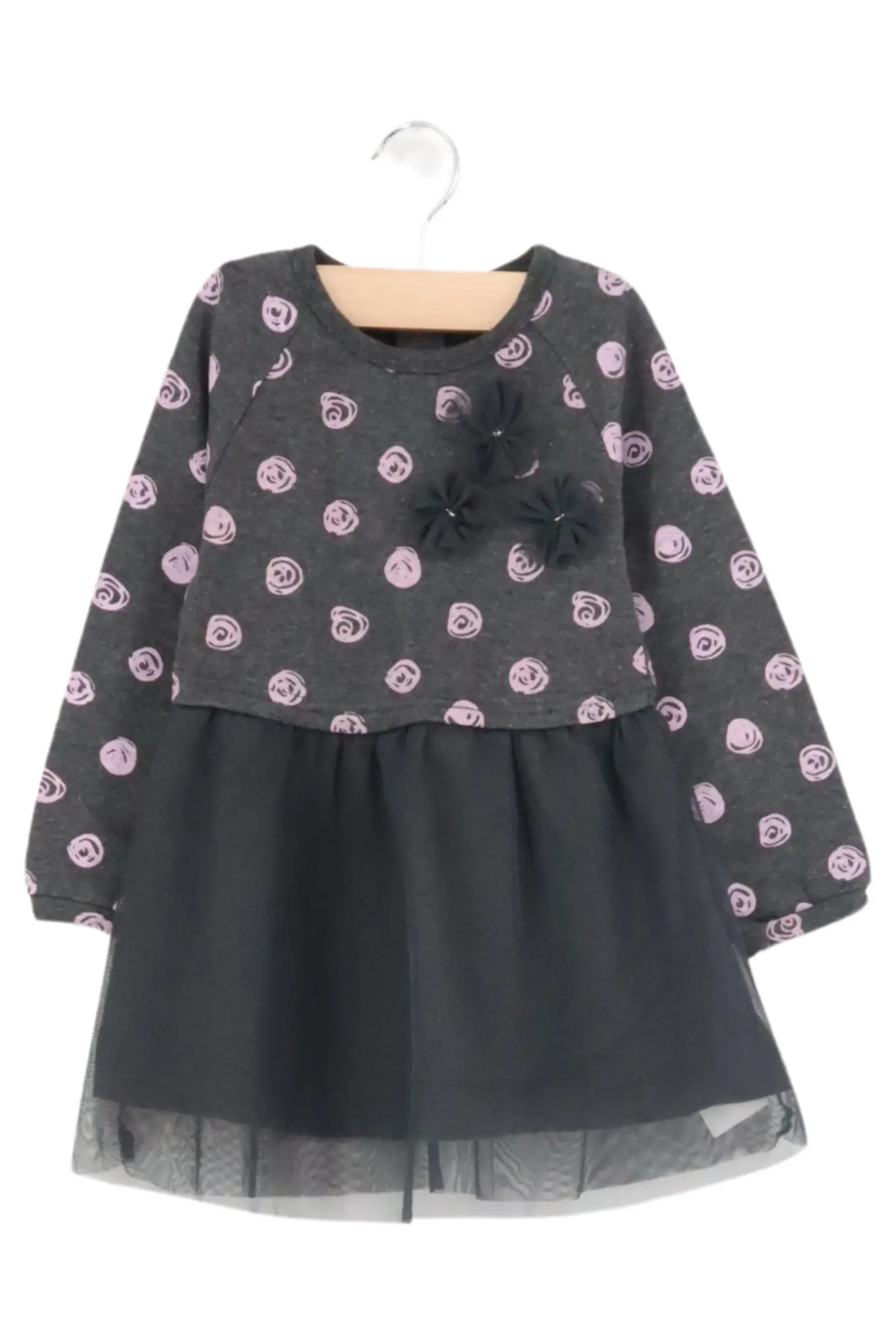 DIRKJE festliches Kleid Kinder Gr. 86 Grau Blumenapplikation