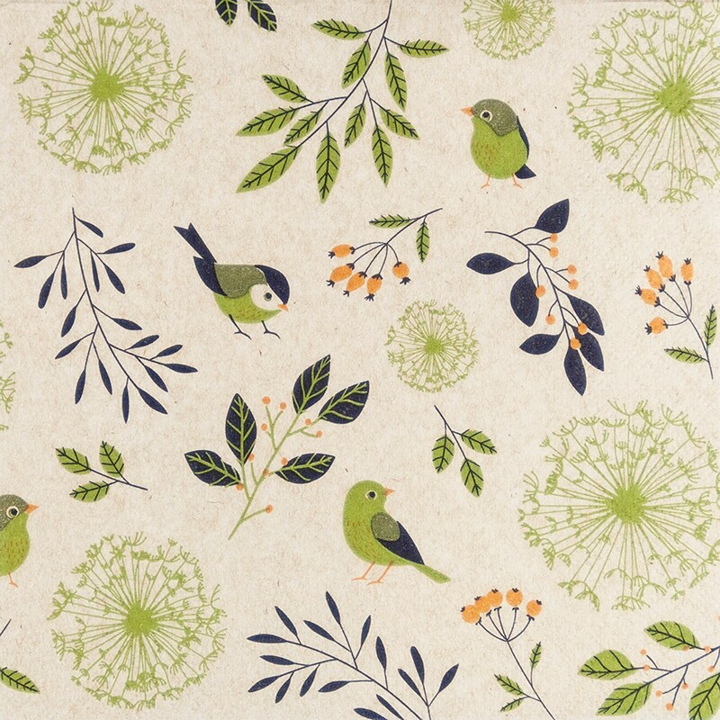 Home Fashion, Birds and Twigs green, Lunch-Servietten aufgefaltetes Maß 33 cm x 33 cm, im Viertelfalz, 20 Stück pro Pack