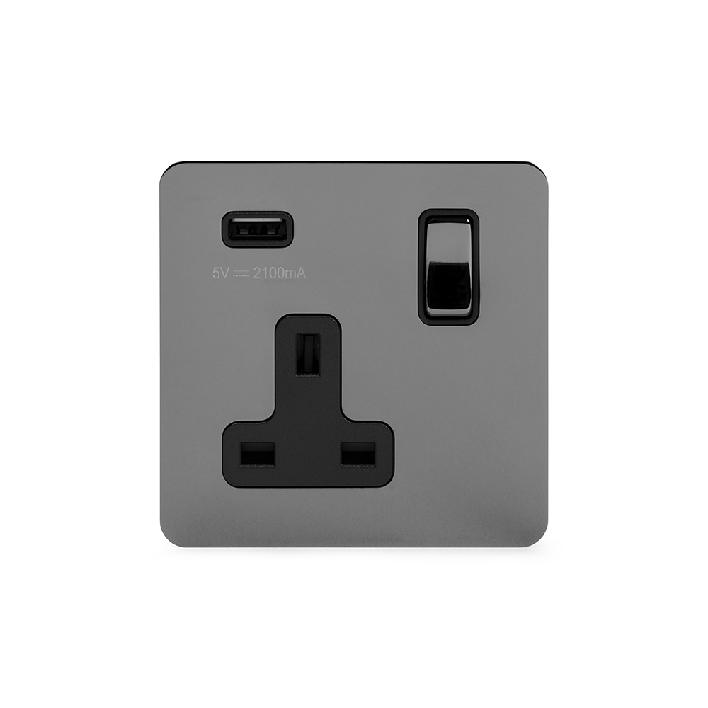 Soho Lighting Matt Black & Brushed Brass 1 Gang 13A SP Socket with USB-A 2.1A