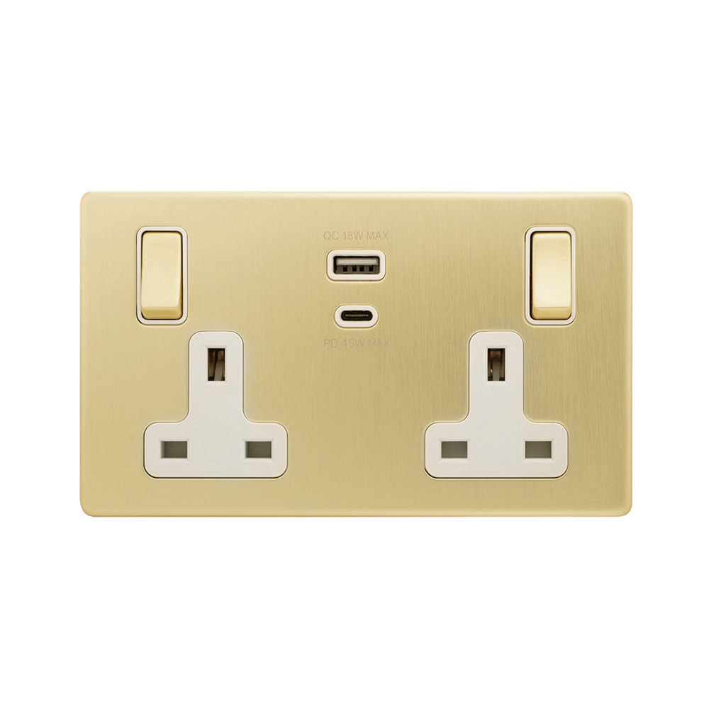 Soho Lighting Antique Brass 1 Gang USB C+C Socket (13A Socket + 2 USB C 3.1A Ports)