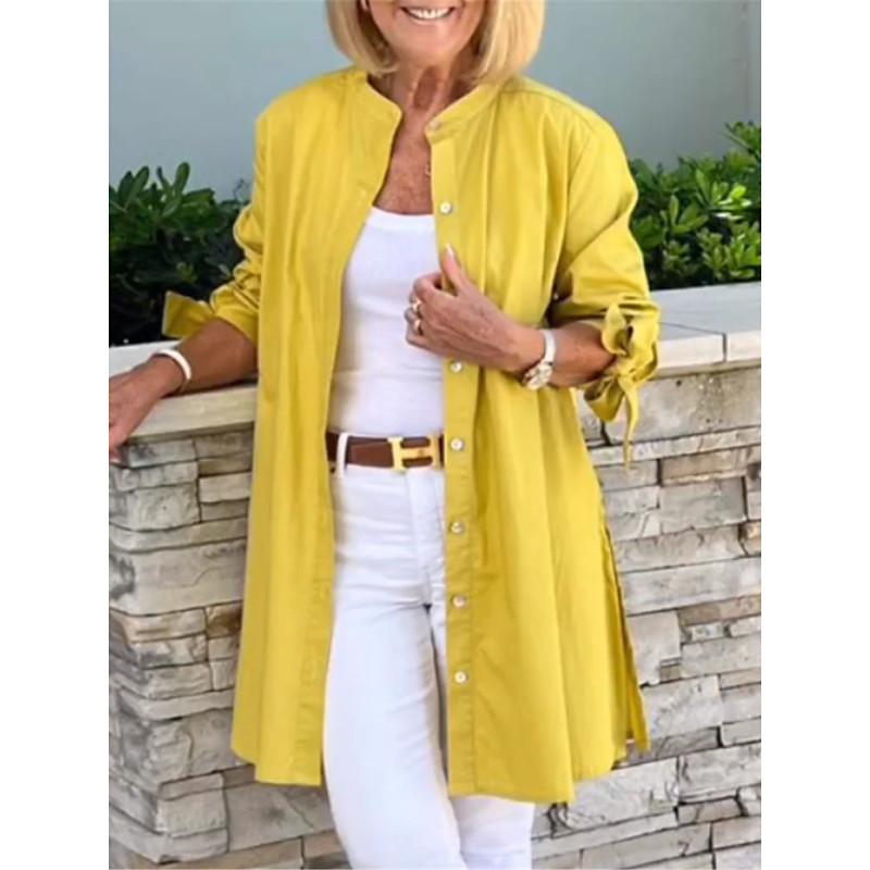 Women's Shirt Blouse Solid Color Basic Casual Long Sleeve Turtleneck Long Tops Daily Buttons Black Yellow Blue Fall Winter
