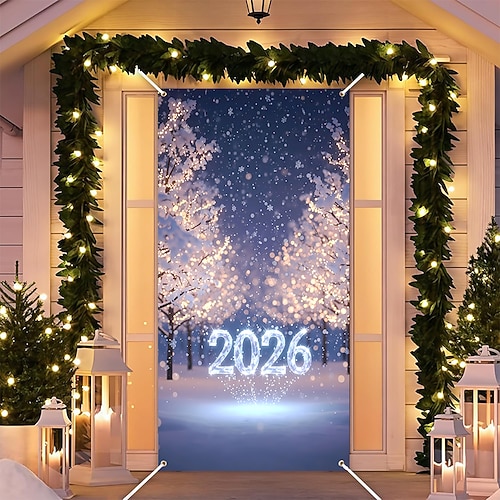 Capodanno Poster Copertura della porta Banner per esterni Buon anno 2026 Carino 3D Da serata Dormitorio Stanza per adolescenti Dormitorio universitario Ragazzi Man Cave Frat Bedroom Sfondi di ripresa