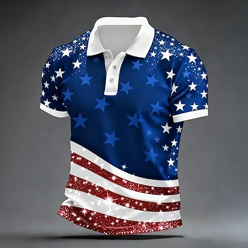 4. Juli 2026 250. Herren Amerikanische US-Flagge Poloshirts Kurzarm Polo-Shirts Revers Lässig Athleisure Alltagskleidung Festival-Outfit 3D-Druck Knöpfe Frühling Sommer Blau Rote Grau