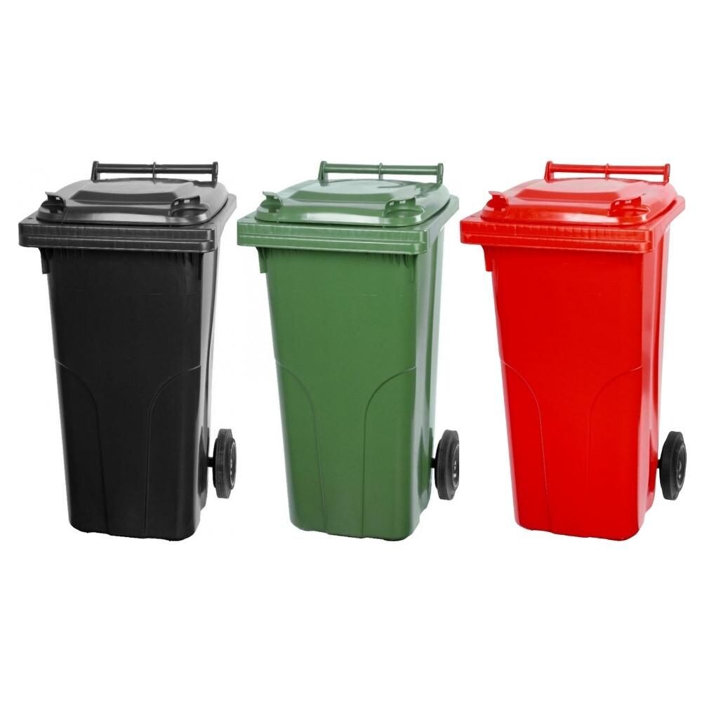 Mega Deal 3x PROREGAL 2-Rad-Mülltonne, 120 Liter Grau & Grün & Rot, Mülltonne, Müllgroßbehälter, Mülleimer, Abfalltonne, Müllbehälter