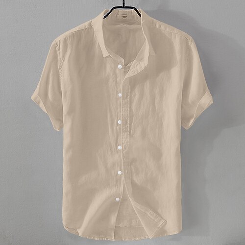 Per uomo Camicia Camicia di lino Camicia casual Camicia di cotone Semplice Vacanza Streetwear Nero Bianco Rosa Blu Manica Corta Collo ripiegato Estate Abbigliamento Bottonato