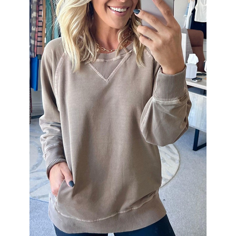 Women's Sweatshirt Casual Plain Street Dailywear Crew Neck Pocket Long Sleeve Red Khaki Gray Fall Winter