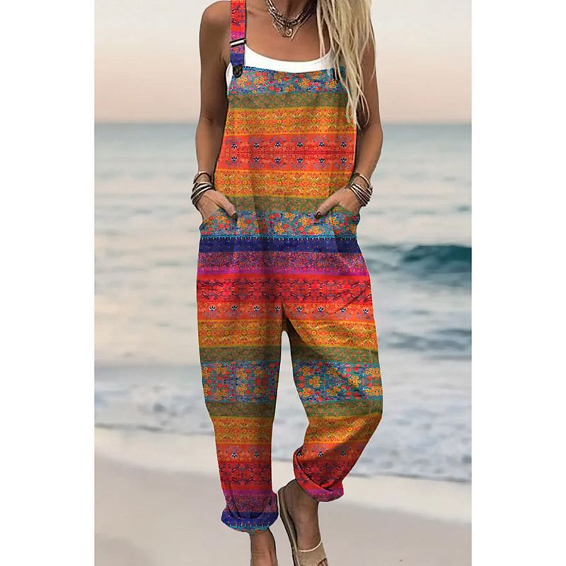Women's Dungarees Active Floral Sleeveless Sleeveless Straight Square Neck Pocket with Pocket Vacation Daily Loose Fit Pink Red Green Summer
