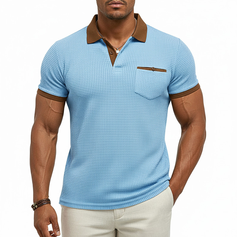 Men's Graphic Waffle Polo Shirts Textured Short Sleeve Polo Shirts Collared Shirts Business Casual Business Athleisure Daily Wear Pocket 3D Print Buttons Summer Blue Yellow Dark Pink