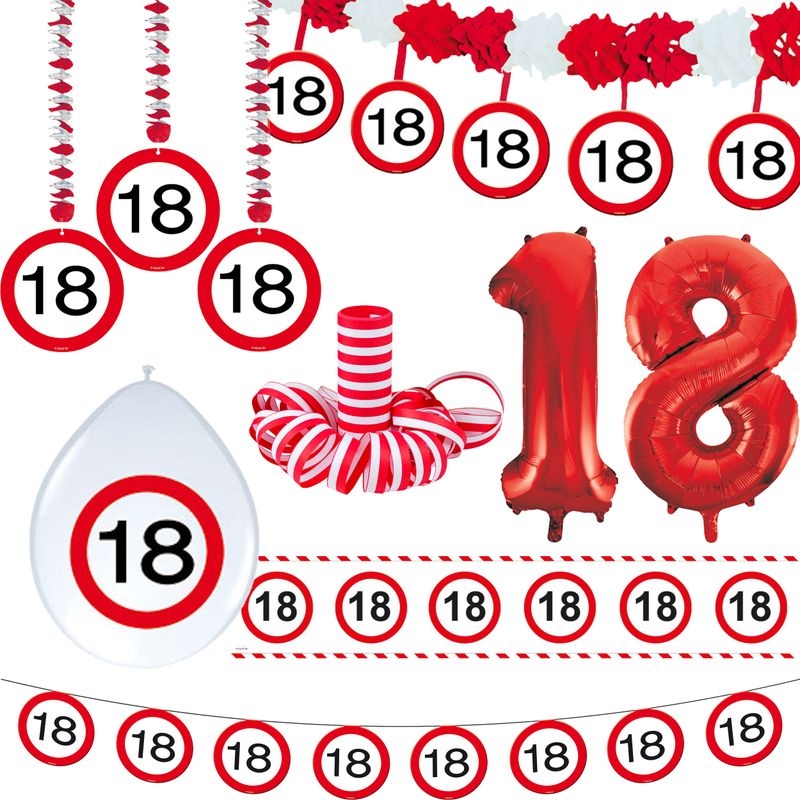 18. Geburtstag Verkehrsschild Geburtstagsdeko Partyset Party Deko Set rot weiss Dekoration Zahl volljährig Frau Mann