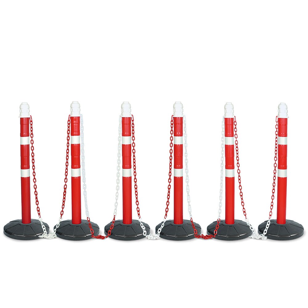 BRB Ketten- / Warnständer Komplett-Set mit 6 Kettenständern, 10 m Kette, Rohr Ø 70 mm, Höhe 1000 mm, Standfuß aus Vollgummi