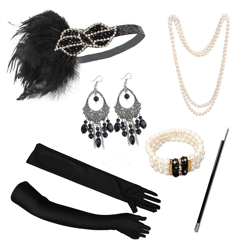 Set Retro Vintage Roaring 20s 1920s Flapper Headband Headwear Accessories Set The Great Gatsby Flapper Girl Feather Fancy Dress Women's Christmas Carnival Masquerade Retro Theme Party Charleston Dance
