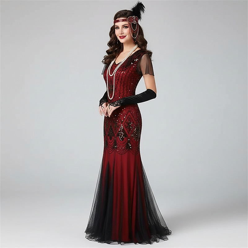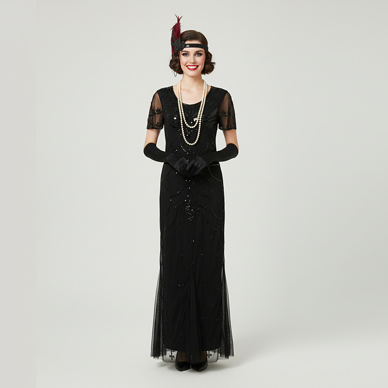 Roaring 20s 1920s Cocktail Dress Ankle Length Dress Party Costume Prom Dress Cap Sleeves The Great Gatsby Sequin V Neck Scoop Neck Fancy Dress Women's Christmas New Year Wedding Party Evening Party