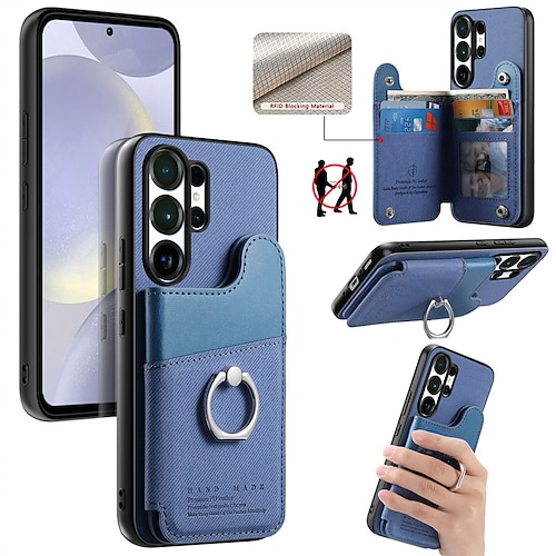 Handy Hülle Handyhüllen Für Samsung Galaxy S26 S26 Plus S26 Ultra Rückseite Mit Ständer Ringhalter Ringverschluss Retro TPU PU-Leder