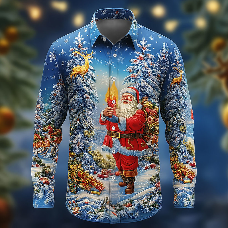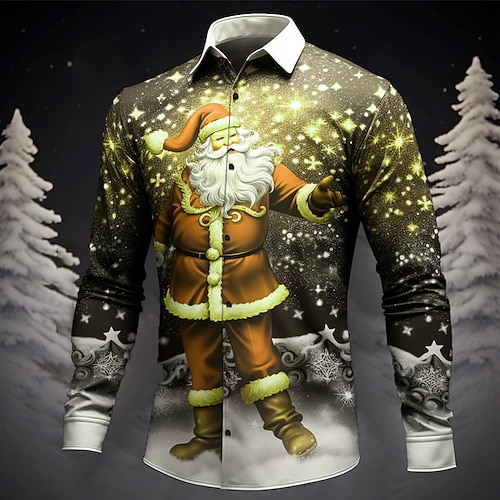 Christmas Men's Santa Claus Christmas Tree Christmas Gift Shirt Button Up Shirt Long Sleeve Funny Outdoor Holiday Spring Fall Turndown 3D Print Collared Shirts Blue 3# Blue 2# Blue 1# Blue
