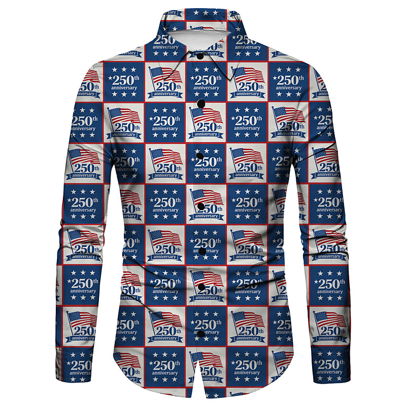 American 250 Retro Vintage 1970s Shirt Aloha Shirt Long Sleeves Hippie Geometic Ethnic Fancy Dress Men's Masquerade 4th of July Party Independence Day Semiquincentennial Adults' Shirt