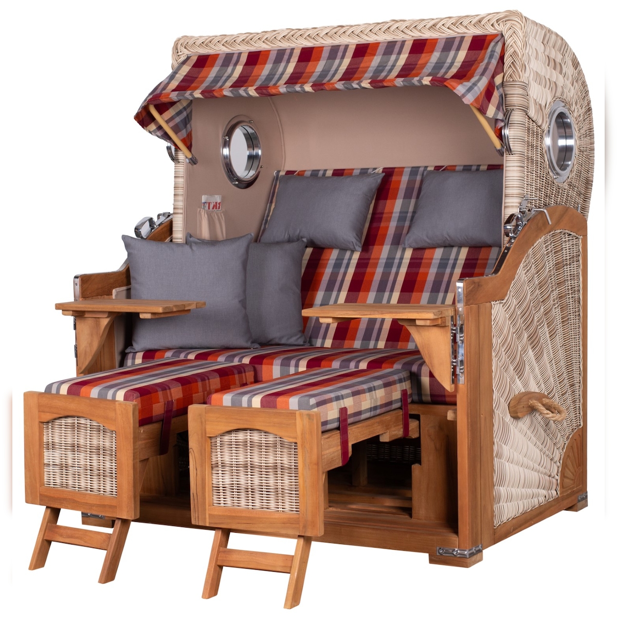 Mr. Deko Strandkorb Komplettset - bene living - Ammersee Grande XL Teak - PE shell - Modell 584 - inkl. Liftersystem