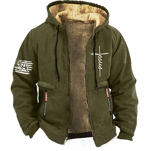 Per uomo Felpa con cappuccio a zip intera Sherpa morbido Giacca in Pile Felpa con cappuccio in pile Nero Vino Verde militare Blu marino Blu Con Cappuccio Bandiera Semplice Cerniera Tasca Coulisse