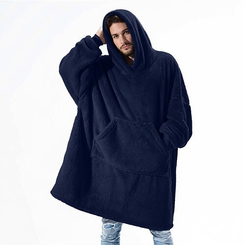 Per uomo Pigiama Pigiami Accappatoio Semplice Moda Elegante Classico Casa Quotidiano Da letto Sherpa Poliestere Calore Termico Comodità Morbido Felpa con Cappuccio Manica Lunga Autunno Inverno Blu