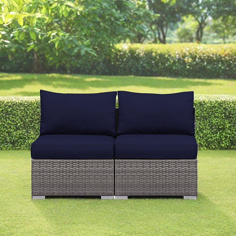 2-Piece Patio Armless Sofa Cover Set, Outdoor Sectional Sofa, All-Weather Grey PE Wicker Rattan Conversation Sofa, Outdoor Loveseat, Patio Seating for Balcony Garden Pool