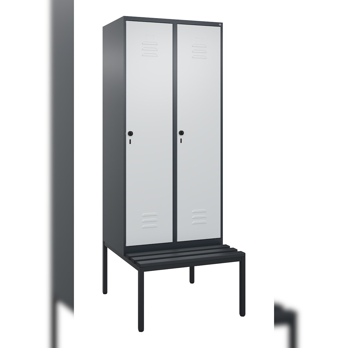 C+P Spind Classic PLUS, Kunststoff untergebaute Sitzbank, 2 Abteile, HxBxT 212x80x82cm, Sicherheitsdrehriegel, Anthrazit/Hellgrau von PROREGAL