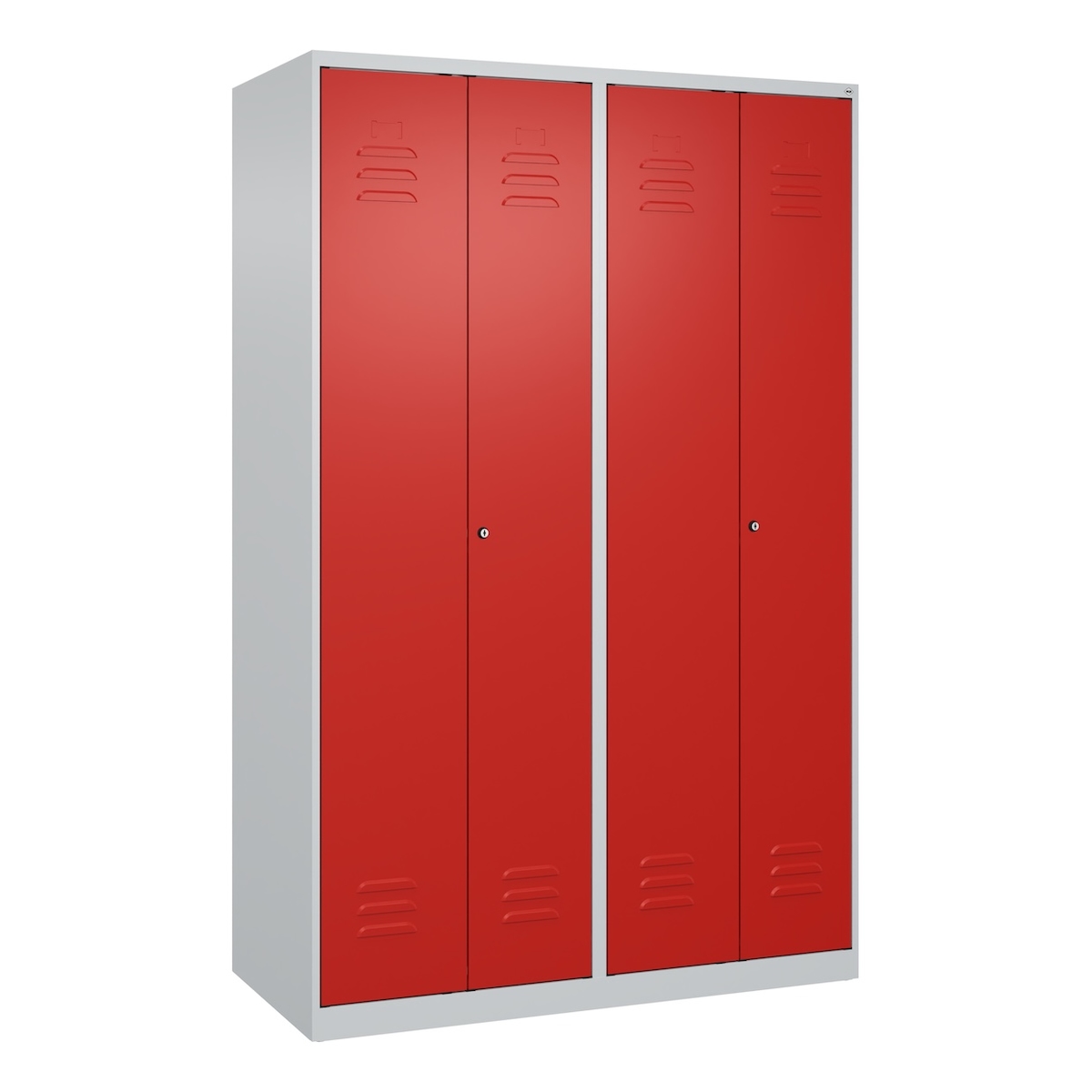 C+P Doppel-Spind Classic PLUS, 4 Abteile, HxBxT 185x120x50cm, Zylinderschloss, Hellgrau/Rot von PROREGAL