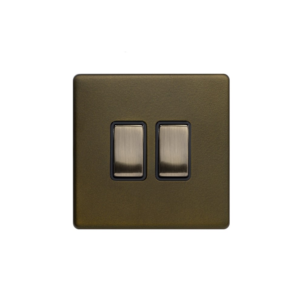 Soho Lighting Bronze 2 Gang Switch with 1x Intermediate Switch & 10A 2 Way Switch Black Insert Screwless - Size: 86mm x 86mm