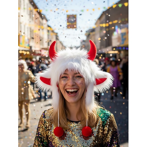 Schwarzer und roter Teufelshörnerhut für Damen mit Bommeln – lustiger, flauschiger Kostümhut für Karneval, Festivals und Themenveranstaltungen