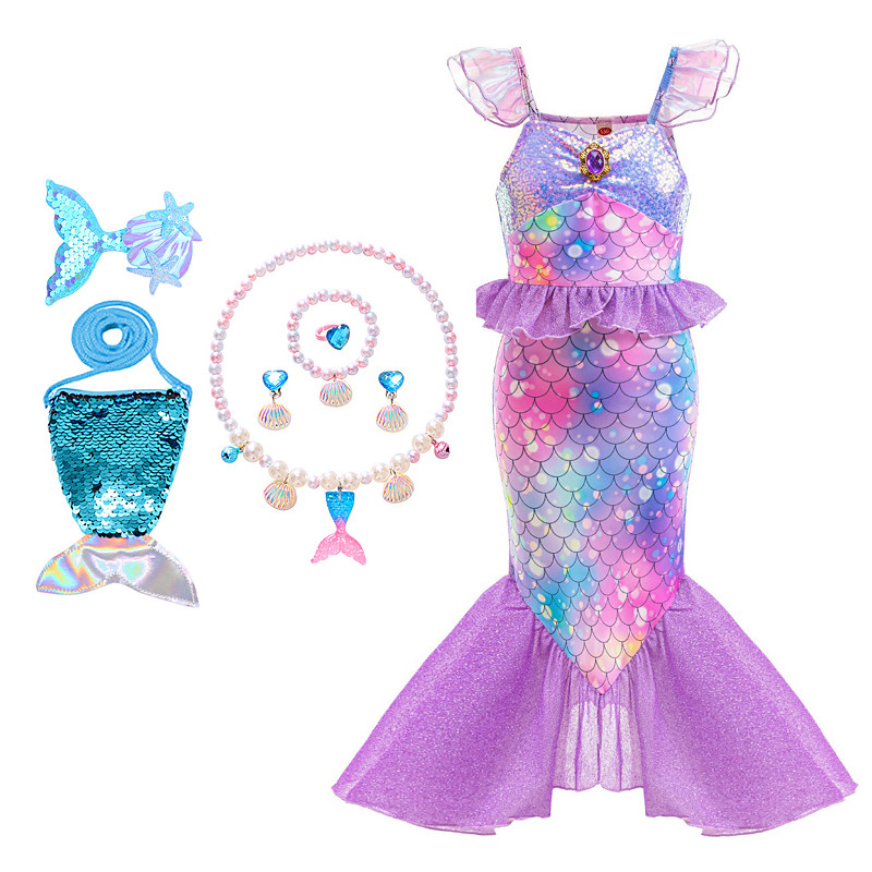 Book Week 2026 Mermaid Ariel Princess Aqua Princess Dress Costume Flower Girl Dress Movie TV Theme Costumes for Girls' Kid's Carnival World Book Day Performance Event / Party