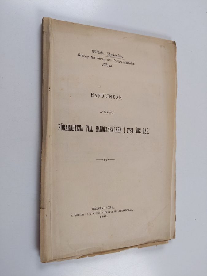 W. Chydenius : Bidrag till läran om leveransaftalet. Bilaga : handlingar angående förarbetena till handelsbalken i 1734 års lag
