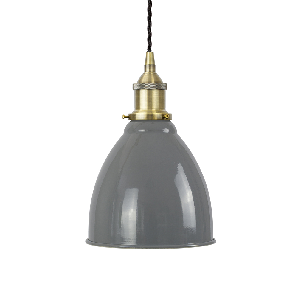 Soho Lighting French Grey Classic Small Pantry Metal Painted Pendant Light with Antique Brass Lamp Holder and Black Twisted Cable