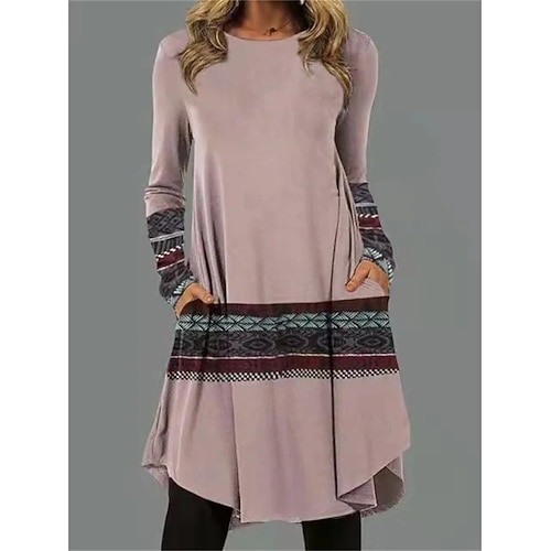 Per donna Abito Midi Tubino Vestito T-Shirt Abito a trapezio Abito sportivo Vacanza Casual Boho Quotidiano Vestibilità comoda Grafico Geometrico Pied-de-poule Manica Lunga Girocollo Nero Rosa Blu