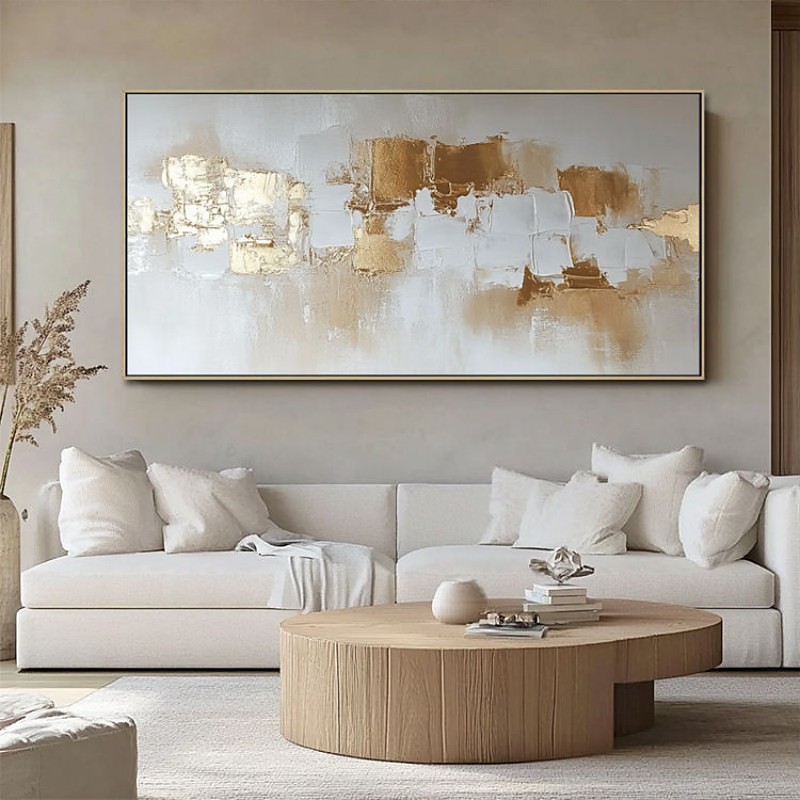 Large Handpainted Oil Painting On Canvas Modern Landscape Gold Abstract Line Wall Art Picture For Living Room Home Decor