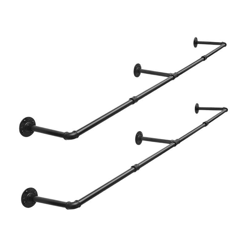 eSituro Kleiderstange Wandmontage 180cm, Kleiderständer für die Wand, Industrierohr Kleiderstangen 2er Set, Platzsparenders Wandregal Küchenregal, Schwarz