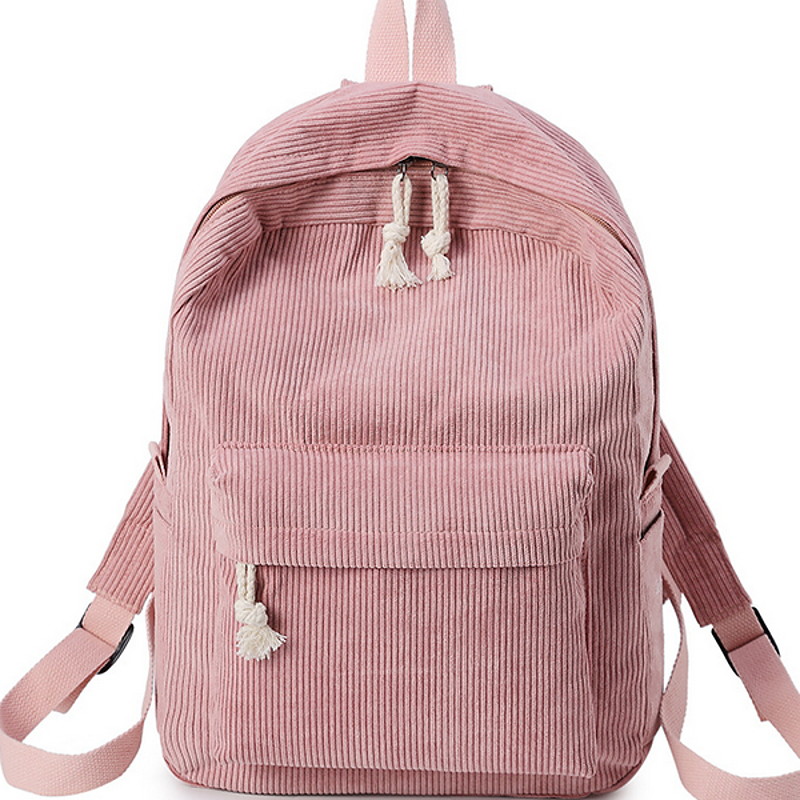Women's Corduroy Backpack with Tassel Drawstring and Front Pocket – Soft Lightweight Casual Bag for School, Travel, or Daily Use