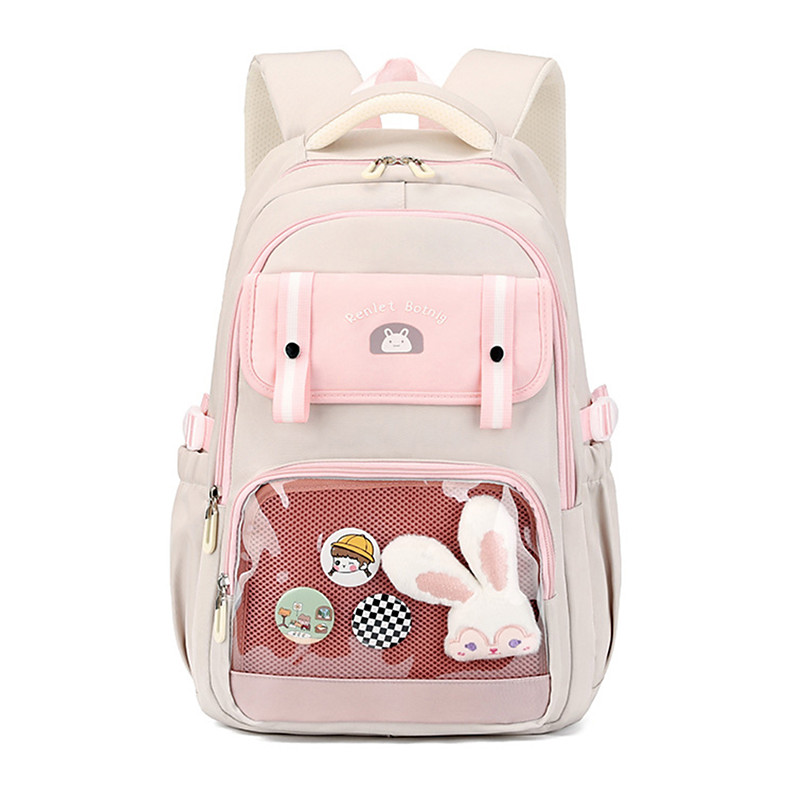 Girl's Large Capacity Lightweight Waterproof Backpack with Clear Front Pocket and Cute Bunny Pin - Cute Travel Bag for School, College and Weekend Trips