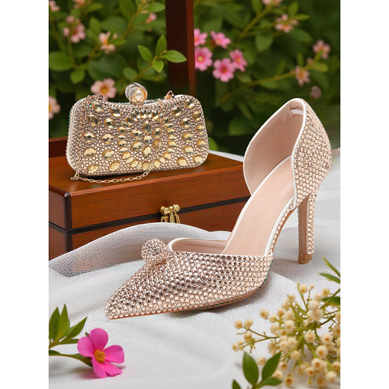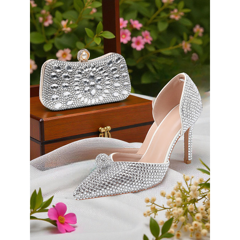 Women's Green Rhinestone Heels and Clutch Set - Sparkly Crystal Pointed Toe Pumps with Matching Evening Bag for Party, Wedding and Formal Events
