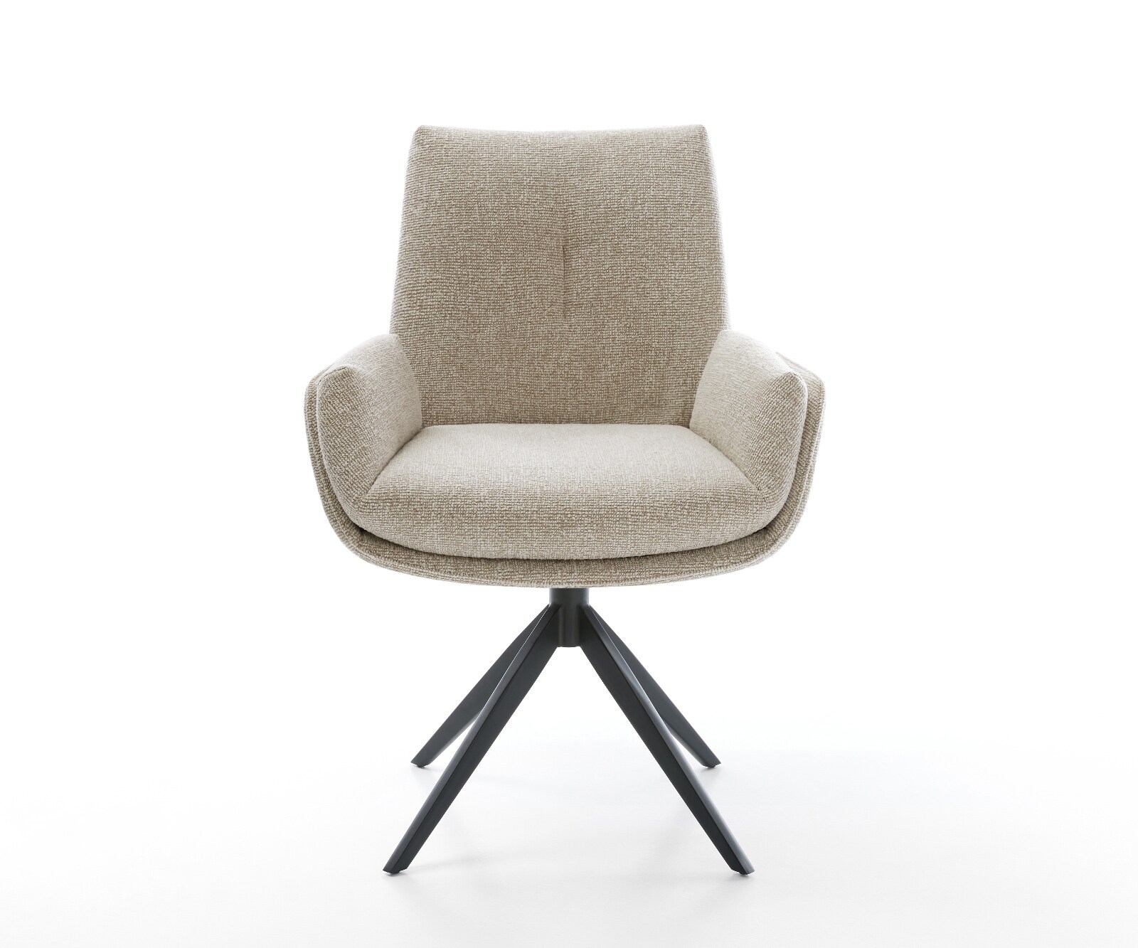 DELIFE Draaistoel Heira-Flex met armleuning geweven stof beige kruisframe breed wit 360° draaibaar rocker-functie pocketveer kern