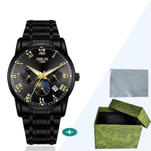 A New Original Business-Style Men'S Watch With Luminous Moon Phase And Calendar Display. Quartz Watch Fashionable Trendy Casual And Versatile Ideal Gift For Life And Travel Men'S Sports Wristwatc