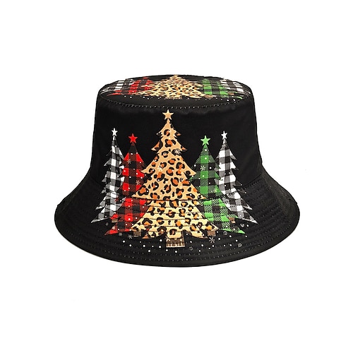 Cappello da pescatore natalizio da donna, in poliestere, con stampa di Babbo Natale e renne, copricapo per feste e celebrazioni invernali