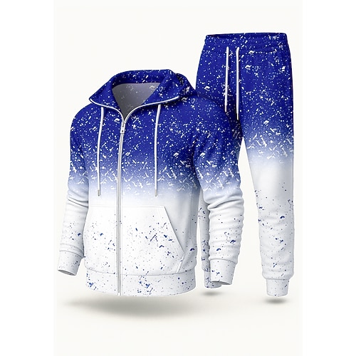 Per uomo Felpa con cappuccio Tuta da Ginnastica Tuta da 2 pezzi Coulisse Con zip Gradiente di Colore Completo Abbigliamento Autunno Nero Blu Lavoro All'aperto Viaggio Leggero Di tendenza Manica Lunga