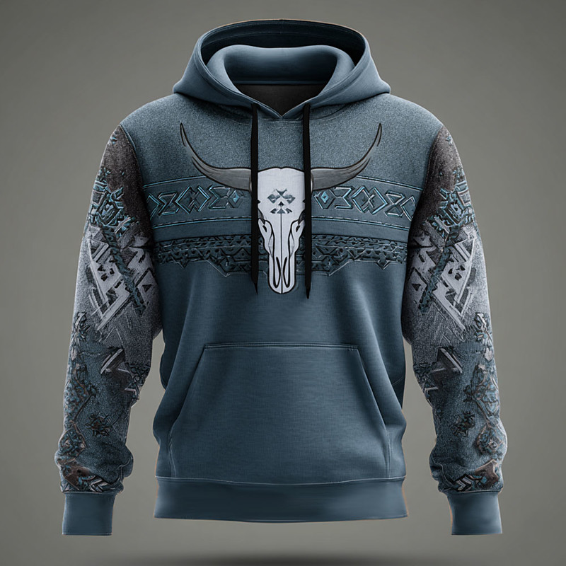 Men's Cowboy Hoodies Sweatshirt Ethnic Vintage Retro Long Sleeve Crew Neck Hooded Holiday Travel Streetwear Blue Brown Green Drawstring 3D Fall Winter Designer S M L XL XXL XXXL