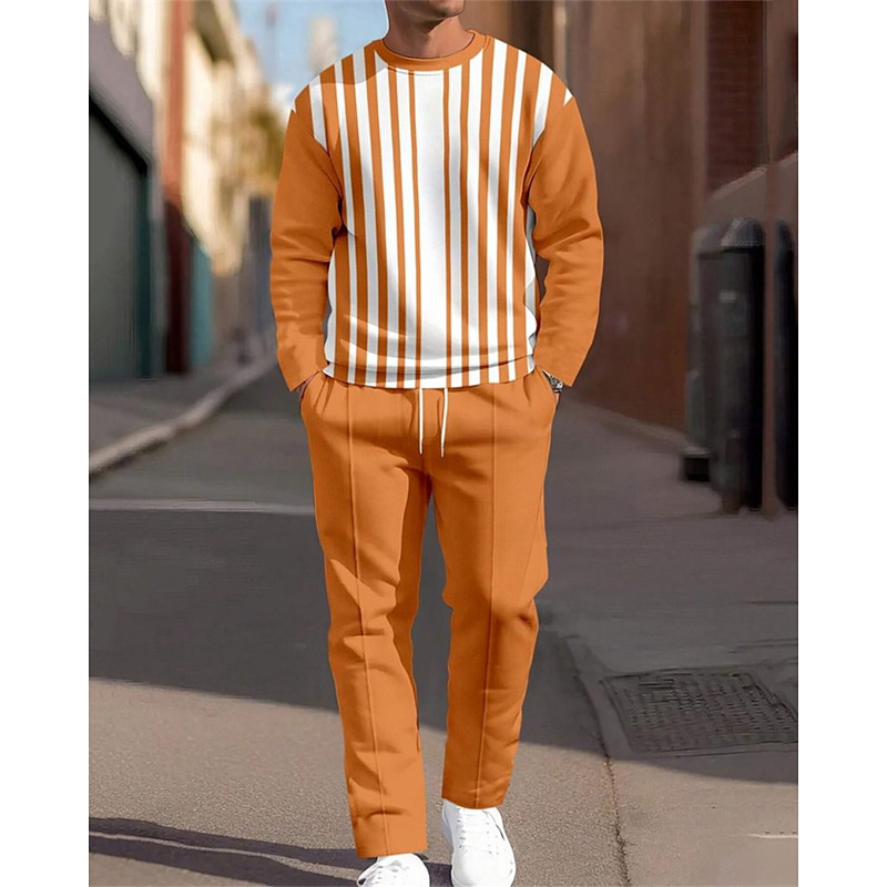Men's Sweatshirt Tracksuit Sweatsuit Blue Orange Green Crew Neck Striped 2 Piece Sports Outdoor Daily Holiday Polyester Streetwear Basic Casual Spring Fall Clothing Apparel Hoodies Sweatshirts