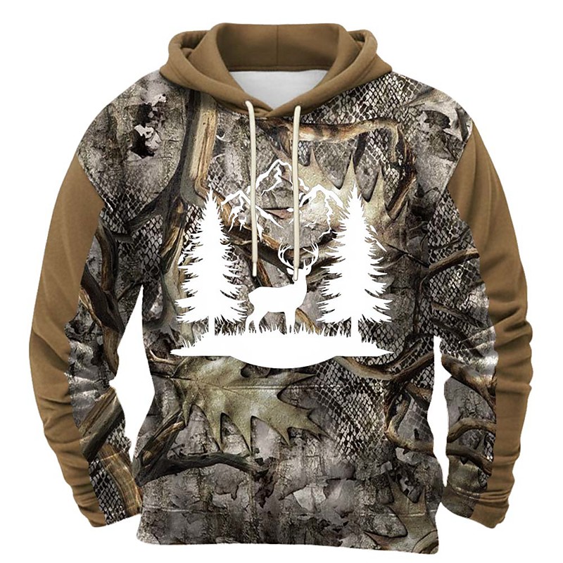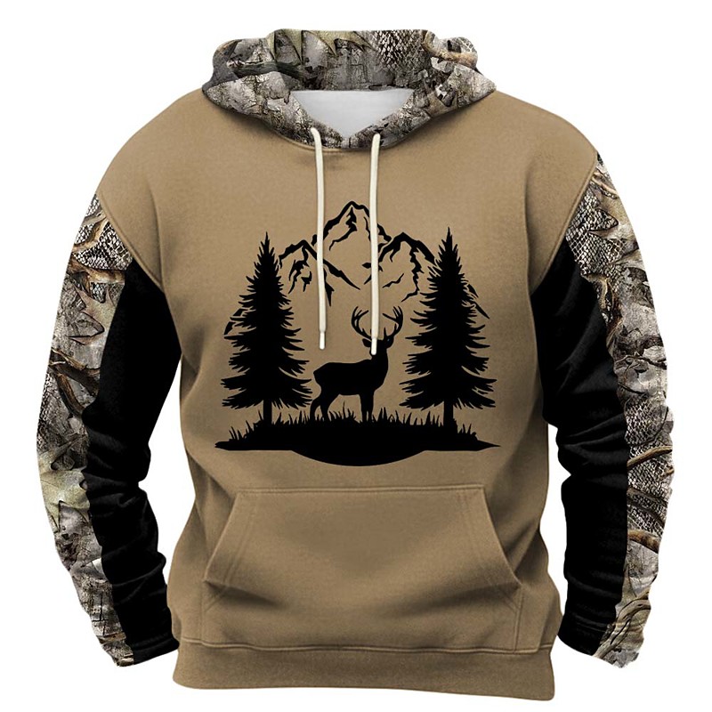 Men's Deer Hoodie Sweatshirt Fashion Classic Crew Neck Outdoor Hunting Black Brown Khaki Brown 2 Drawstring Fall Winter Designer S M L XL XXL XXXL