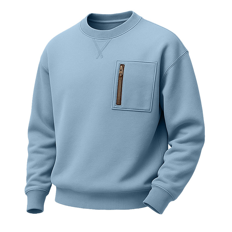 Men's Sweatshirt Pullover Blue Green Gray Crew Neck Plain Patchwork Zipper Pocket Casual Daily Sports Outdoor Streetwear Cool Sportswear Spring Fall Clothing Apparel Hoodies Sweatshirts