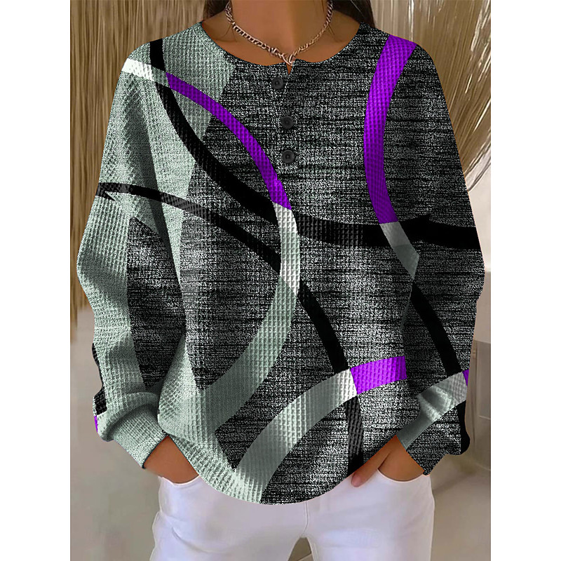 Women's Hoodies Graphic Geometric Color Block Fashion Casual Print Long Sleeve Crew Neck Round Neck Regular Tops Casual Street Buttons Blue Red Purple Green Fall Winter