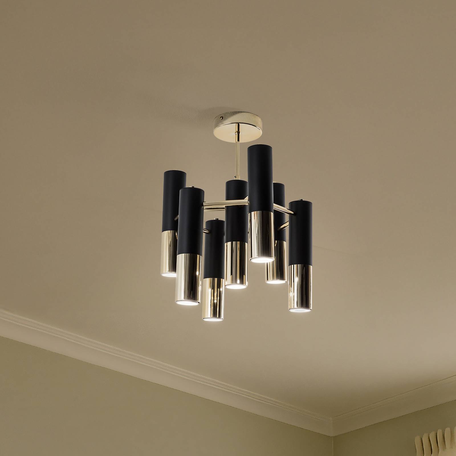 Domiluce Plafonnier Orino, noir/doré, métal, à 7 lampes, GU10